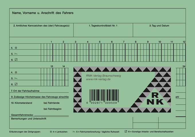 Nach der Fahrpersonalverordnung muss jeder Fahrer eines gewerblich genutzten Fahrzeugs mit mehr als 2,8 Tonnen bis maximal 3,5 Tonnen Höchstmaße inklusive Anhänger Aufzeichnungen über seine Lenk-, Arbeits- und Ruhezeiten führen. Mit dem Kontrollbuch werden diese gesetzlichen Anforderungen erfüllt.